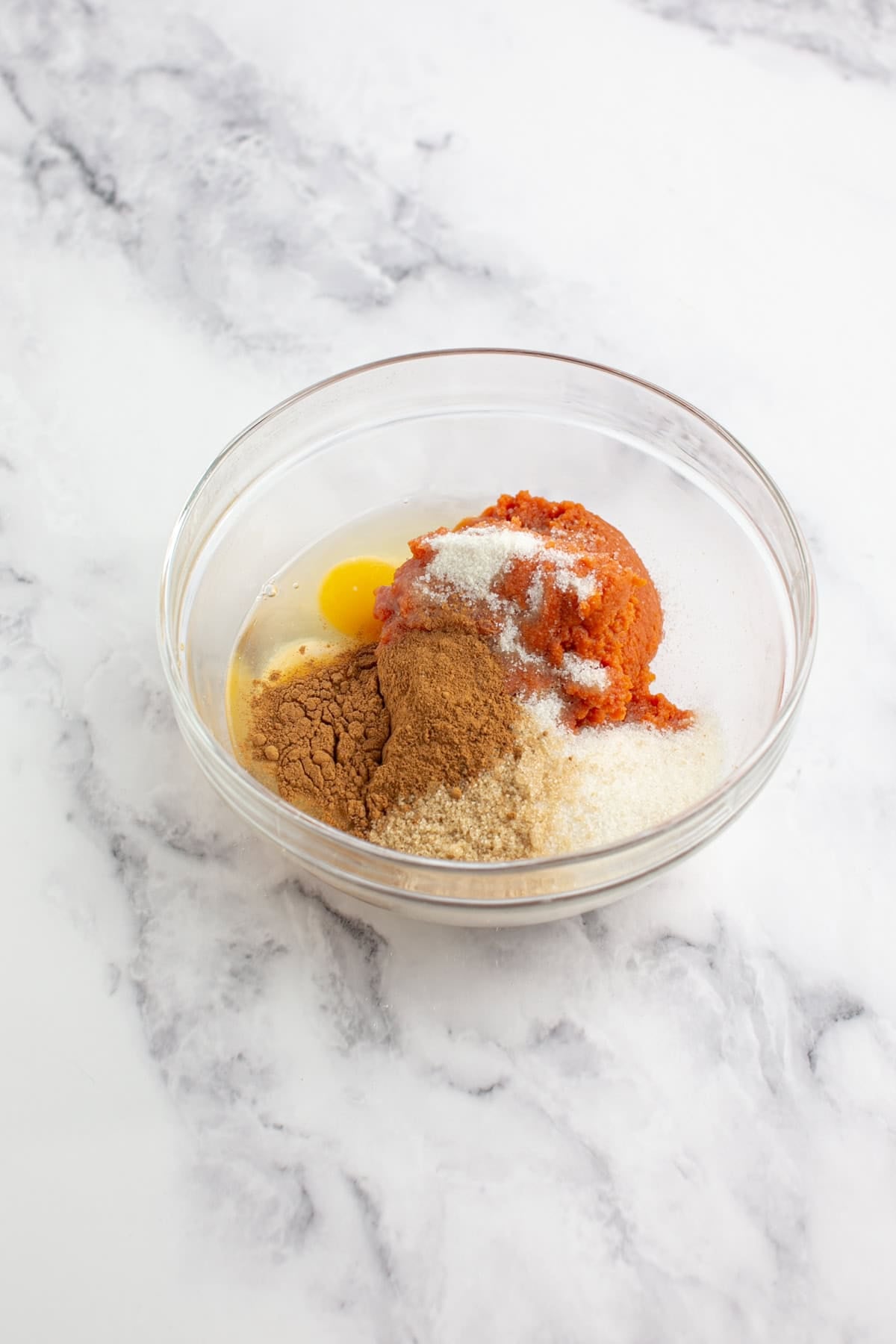 - Add in two eggs, vanilla, pumpkin pie spice, and salt.2 Eggs, 1-1/2 teaspoons Pumpkin Pie Spice, 1 teaspoon Vanilla, A pinch Salt