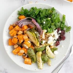 Types of Vegetables: From sweet potatoes and Brussel sprouts, to butternut squash, parsnips, carrots, and more, there’s a ton of different vegetables that you can use for this recipe! I would say pick about two or three hearty vegetables to use in this recipe! Use whatever is in season this time of year!