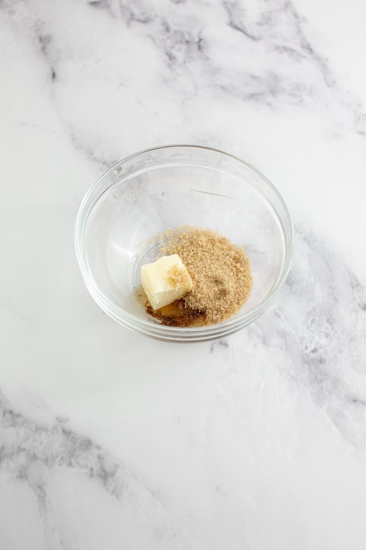 - Add butter, brown sugar, and vanilla extract to a bowl and mix together.2 tablespoons Butter room temperature, 3 tablespoons Brown Sugar, 1/4 teaspoon Vanilla Extract