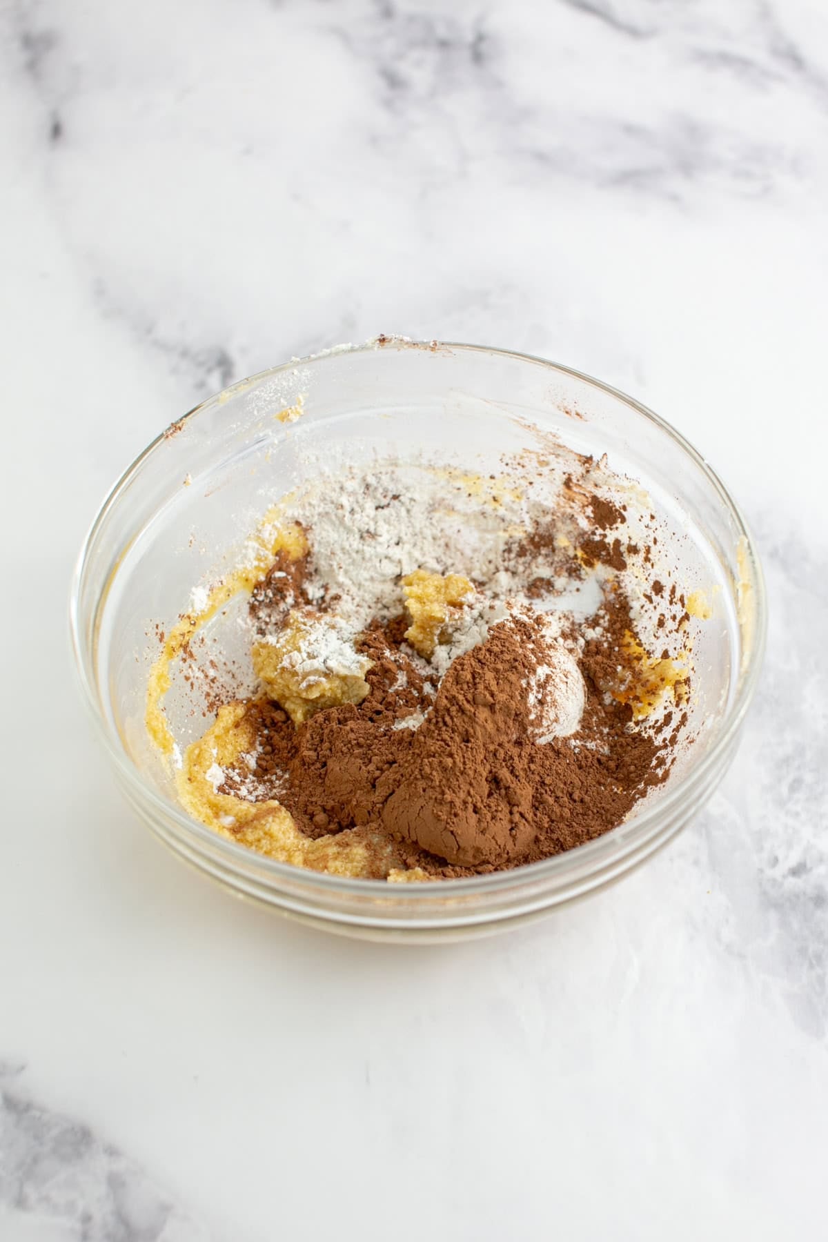 - Stir in flour, cocoa powder, and baking soda.3 1/2 tablespoons Flour, 2 tablespoons Cocoa Powder, 1/8 teaspoon Baking Soda