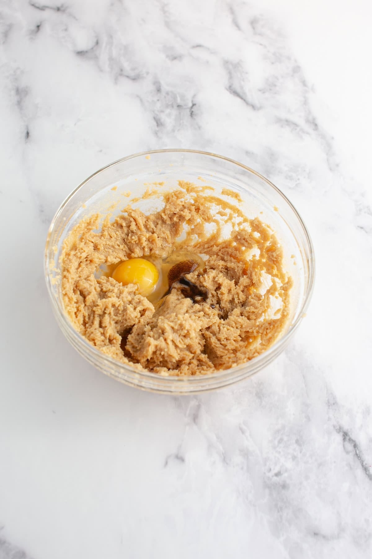 - After the sugar has been fully incorporated, add in the egg and vanilla extract.1 Egg, 1 teaspoon Vanilla Extract