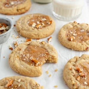 If you need an extra little bit of salt, you can add a pinch of sea salt on top of the caramel after the cookies are done baking!